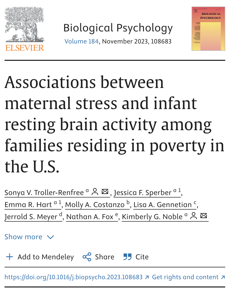 Associations between maternal stress and infant resting brain activity among families residing in poverty in the U.S: Baby’s First Years (2023)