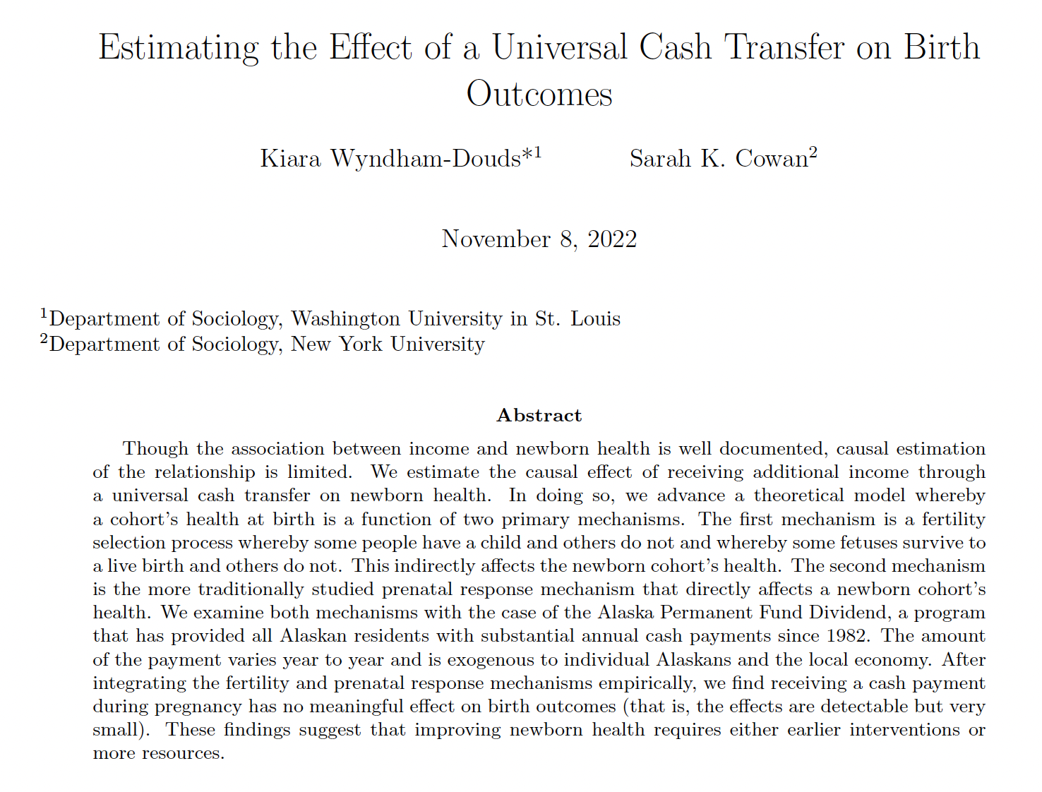 Estimating the Effect of a Universal Cash Transfer on Birth Outcomes (2022)